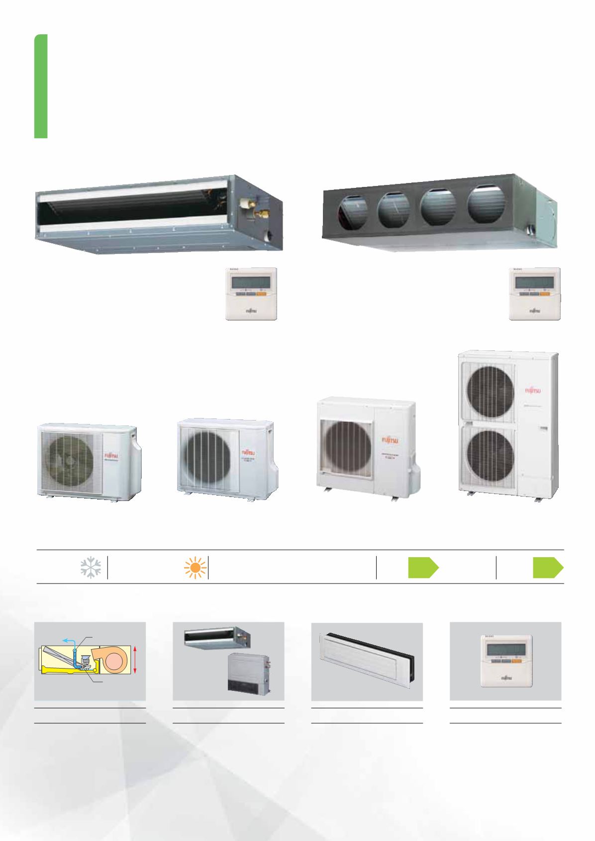 Velik izbor učina unutarnjih kanalnih jedinica čini ovaj model iznimno fleksibilnim i prilagodljivim različitim zahtjevima investitora.